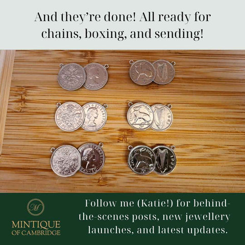 Each of my designs is handmade from authentic coins and built to last a lifetime with a little love and care. Click the link below to learn more about how to care for for your Mintique of Cambridge jewellery.