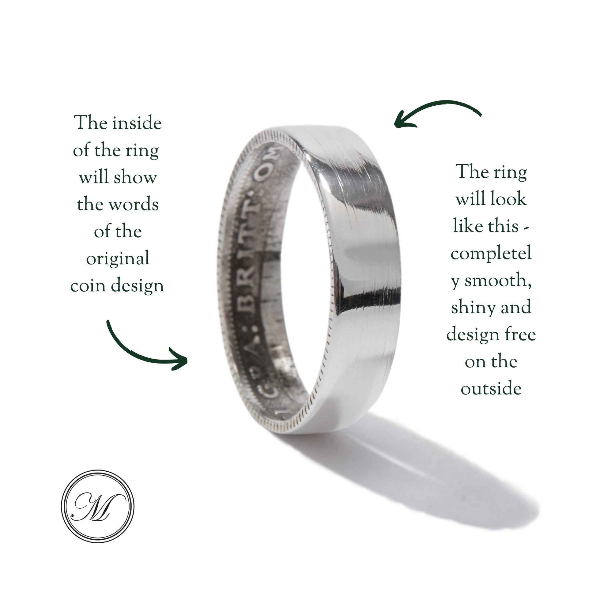 Because of the handmade process and natural variations in minting years, each finished ring may differ slightly from the photos shown - that's what makes yours completely unique.